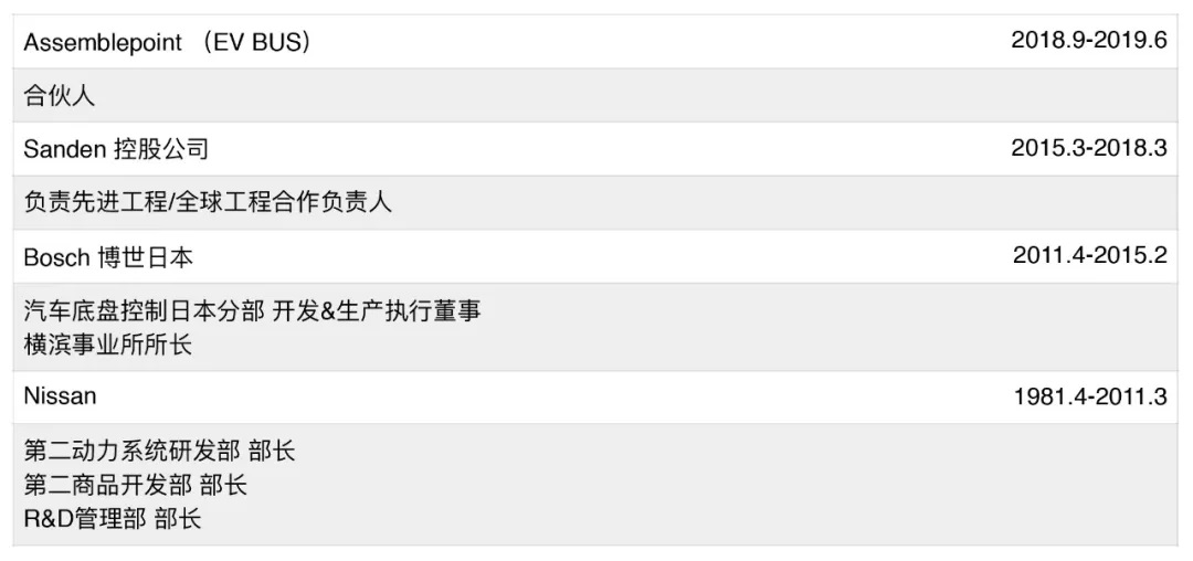 宇野高明在汽车方面拥有近40年的专业经验,曾先后任日产第二商品开发部部长、日产R&D管理部部长、日产第二动力系统研发部部长、日本博世底盘控制部门的开发及生产负责人,在汽车底盘技术及整车研发领域都积累了极为丰富的经验。